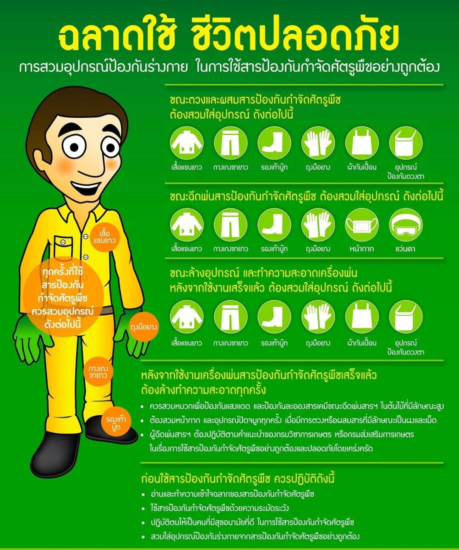 การใช้สารป้องกันกำจัดศัตรูพืชอย่างปลอดภัยไม่เพียงแต่ช่วยป้องกันอันตรายต่อตัวผู้ใช้ แต่ยังช่วยปกป้องสิ่งแวดล้อมและสุขภาพของคนอื่นด้วยครับ