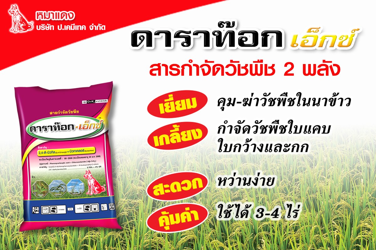ชื่อสามัญ: 2,4-ดี ไอโซบิวทิลเอสเตอร์ + บิวทาคลอร์ 3.76% + 4% GR (2,4-D Isobutyl Ester + Butachlor)